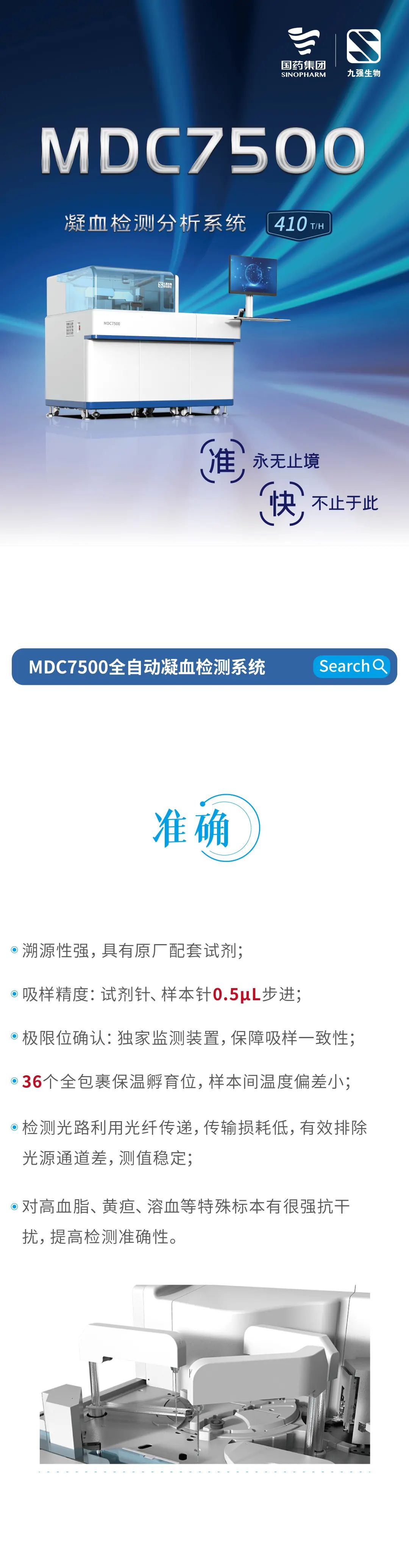 九強生物全自動凝血分析儀MDC7500順利取得北京市藥品監督管理局頒發的《醫療器械注冊證》。