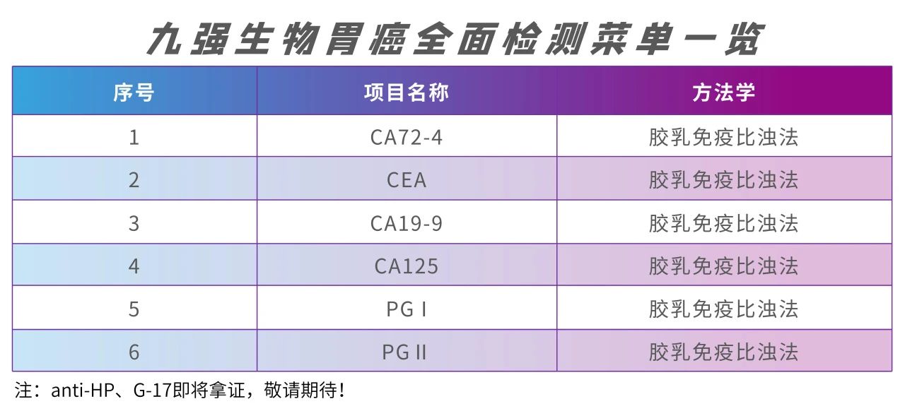 目前用于胃癌臨床診療的實驗室手段,多為腫瘤標志物(TM)檢測,風險篩查TM:HP、PG、G-17和用于預后評估及術后監測的TM:CEA、CA19-9、CA72-4、CYFRA21-1和β-HCG等。其中,CEA、CA19-9、CA72-4還可作為胃癌輔助診斷TM,雖然單獨檢測對極早期胃癌的診斷價值有限,但聯合檢測可降低胃癌漏診率。