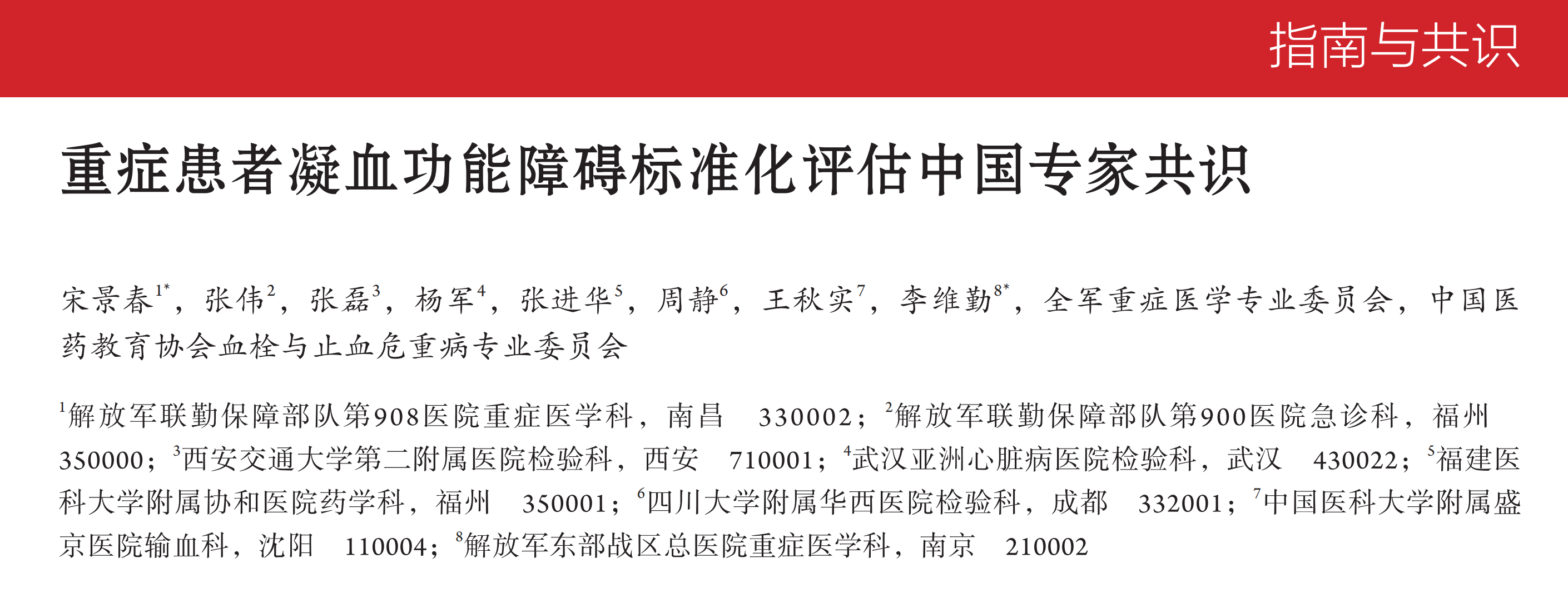 本篇文章依托《重癥患者凝血功能障礙標準化評估中國專家共識》編寫