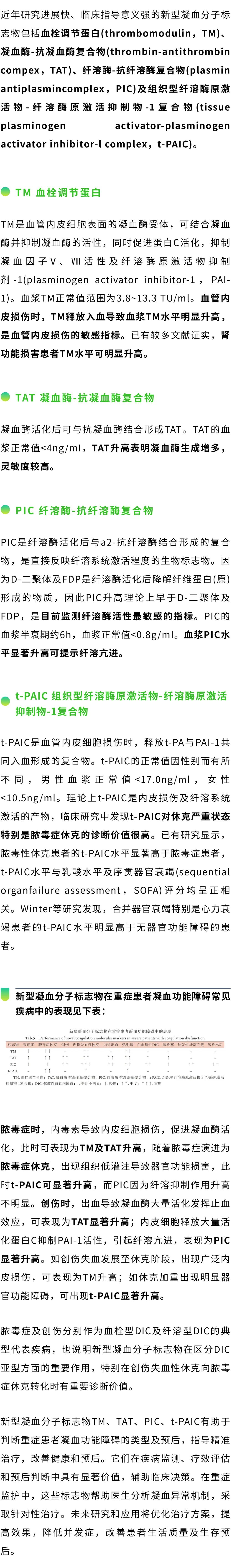 推薦使用新型凝血分子標志物判斷重癥患者凝血功能障礙的類型及預后(推薦強度A,證據等級Ⅲ)