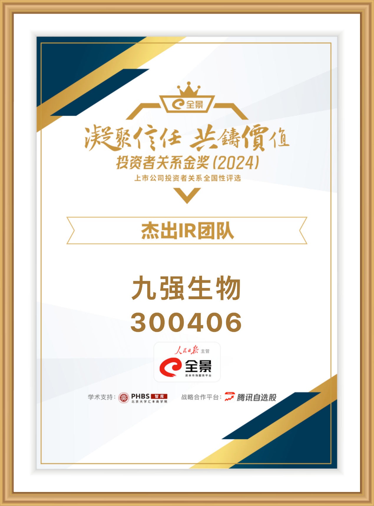 喜訊 | 第六屆全景投資者關(guān)系金獎隆重揭曉!九強生物榮獲“杰出IR團隊”大獎、王建民先生獲評“杰出董秘”
